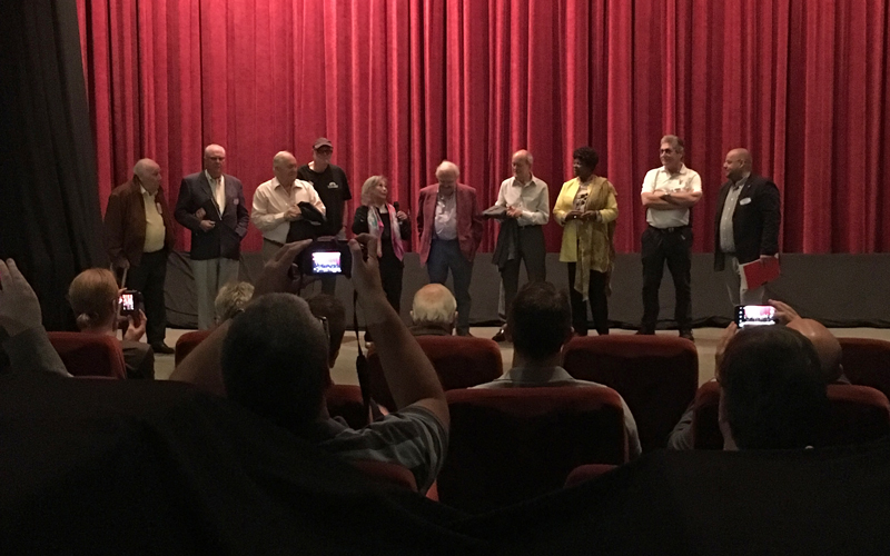 Watching a 4K print of You Only Live Twice in the John Barry Theatre with guests of honour (from left to right) Dickie Bamber, Bill Cartlidge, Peter Lamont, Rocky Taylor, Francesca Tu, Shane Rimmer, Norman Wanstall, Sylvana Henriques, Vic Armstrong and host Gareth Owen