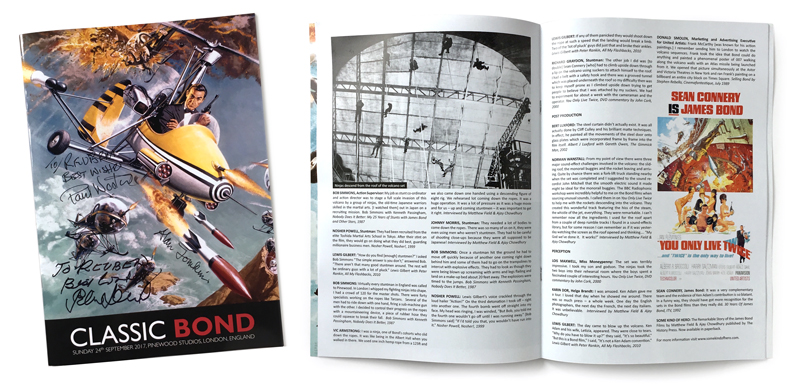 Meeting Bill Cartlidge who served as an assistant director and later associate producer on all three Lewis Gilbert directed Bond films. I got him to sign my event programme. A very funny guy who had plenty of stories from his time working on Bond.