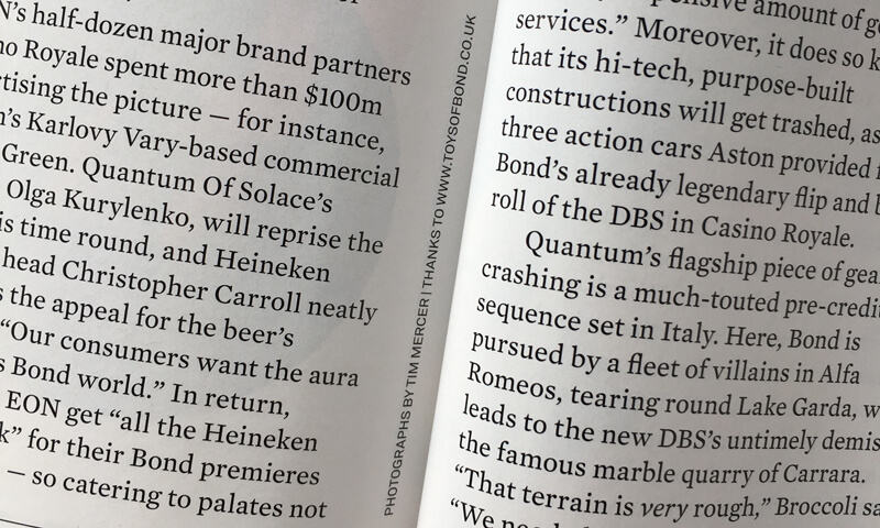 'The Business of Bond' article and magazine credit for Toys of Bond