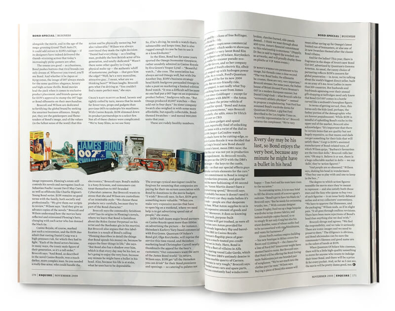 Esquire magazine with Quantum Of Solace cover and articles - this is the standard retail cover (The National Magazine Company Ltd., UK, November 2008)