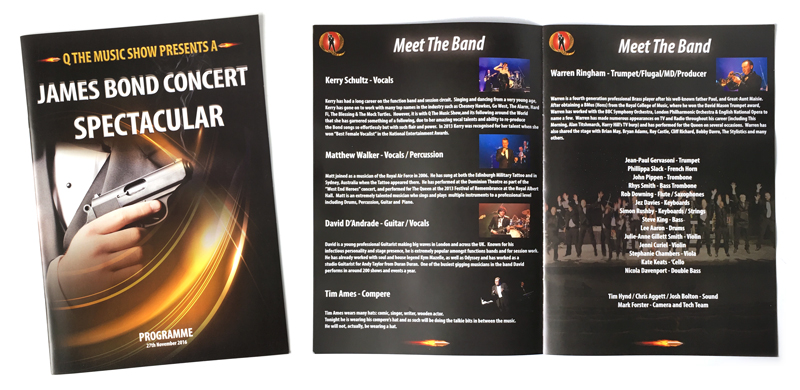 In November 2016 I had the pleasure of seeing Q The Music live for the first time at the Harlington Theatre in Fleet, Hampshire. Q The Music are the foremost James Bond Tribute Band and are led by ace trumpeter Warren Ringham, who's knowledge of Bond music is second to none. If you have the chance to see them live I can't recommend them highly enough. You can find out more about Q The Music here.