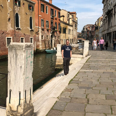 Three small locations all next to each other in Venice as featured in Moonraker. First are the buildings and canal you see Bond and Dr Holly Goodhead outside when 007 surprises her after they have both left the glass museum. Then is the bridge that Dr Goodhead leaves over and lastly are the steps that Bond takes to get into the waiting gondola. These are all located near the corner of Fondamenta Misericodia and Fondamenta S. Felice. (Visited May 2018)