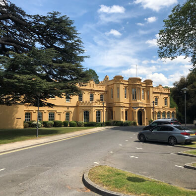 Chalfont Park, Buckinghamshire which was used as the exterior of Shrublands in Thunderball. It's now painted a rather ghastly colour! (Visited May 2019)