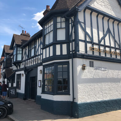 The Royal Saracens Head, Beaconsfield, Buckinghamshire which is briefly seen in Thunderball as the hotel that Major Derval is staying in, and Count Lippe is also seen outside using the telephone box. (Visited May 2019)