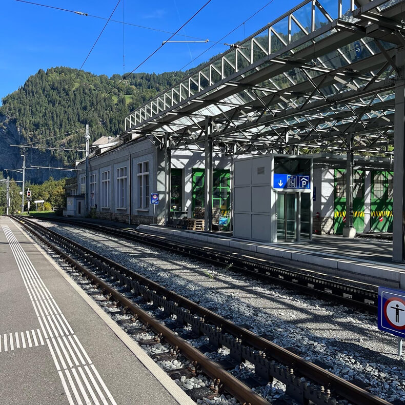 The train station in Lauterbrunnen, Switzerland where Bond first meets Irma Bunt in On Her Majesty's Secret Service. (Visited September 2022)