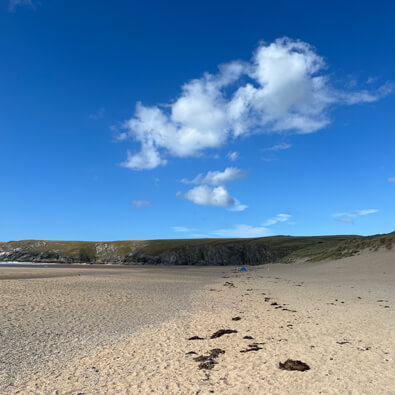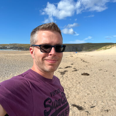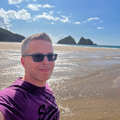 Holywell Bay beach near Newquay in Cornwall. This beach was one of many locations that doubled for North Korea in the pre-title sequence of Die Another Day. The two large rocks off the coast were digitally flipped in the film for some strange reason! (Visited July 2023)