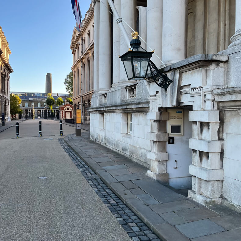 The entrance to the Kremlin Art Repository from Octopussy - actually filmed at the Old Naval College, Greenwich, London. (Visited October 2023)