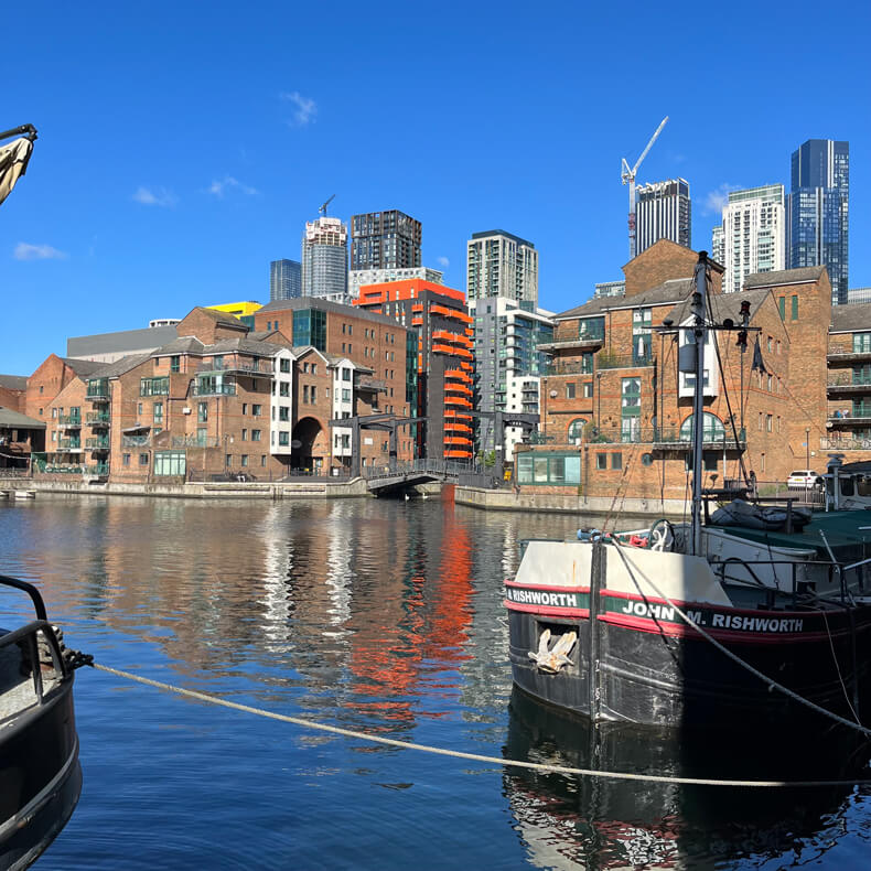 The corner used in The World Is Not Enough boat chase where Bond uses the Q Boat to soak the two traffic wardens. Filmed near Tobacco Docks, London. (Visited October 2023)