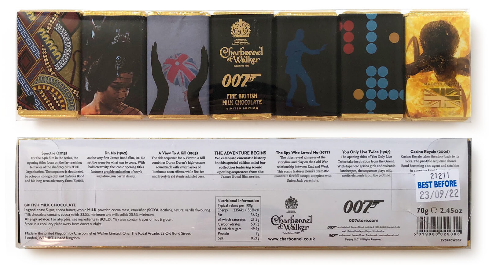 007 limited edition fine British milk chocolate selection (Charbonnel & Walker, UK, 2020)