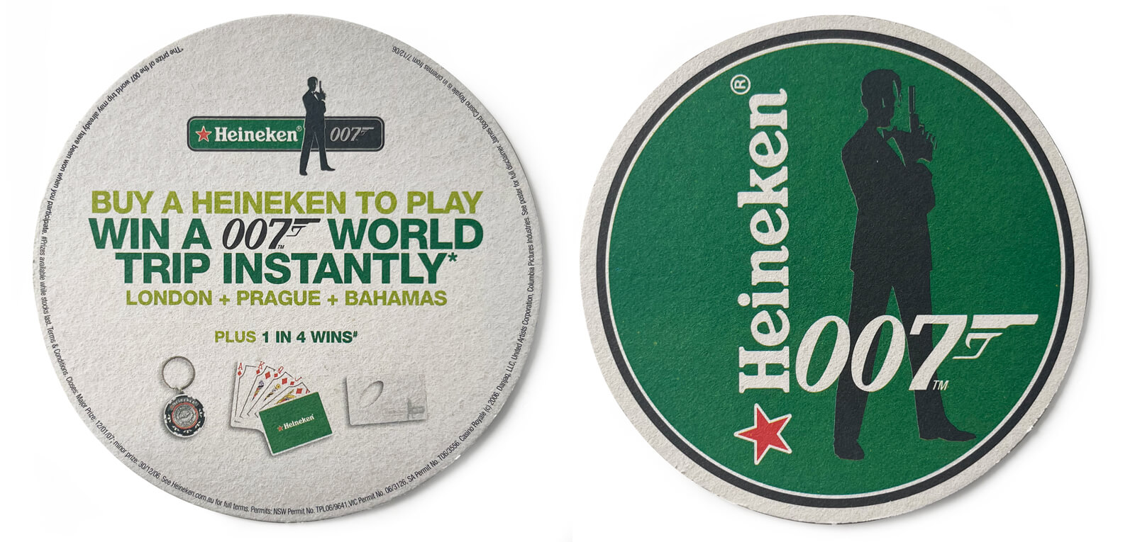 Heineken James Bond beer mat released to tie-in with the No Time To Die promotion (Heineken, Worldwide, 2020)