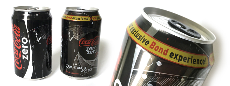 Quantum Of Solace Coca-Cola Zero promotional cans (Coca-Cola, UK, 2008)
