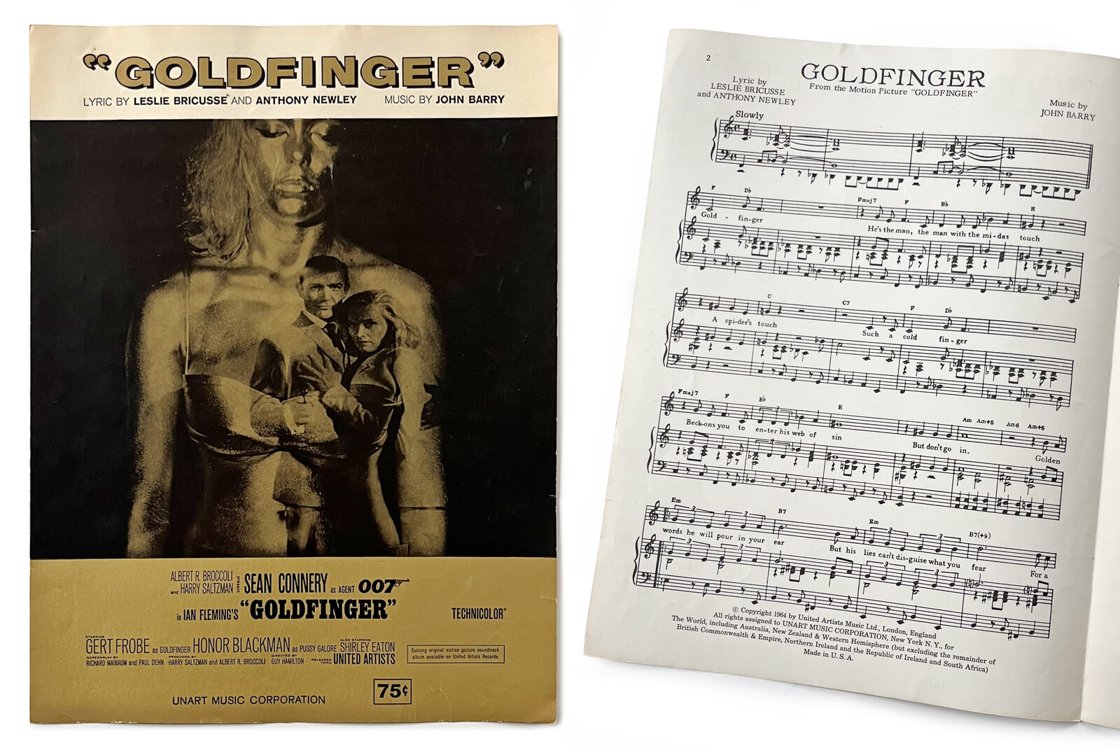 Goldfinger sheet music (Unart Music Corporation, US, 1964)