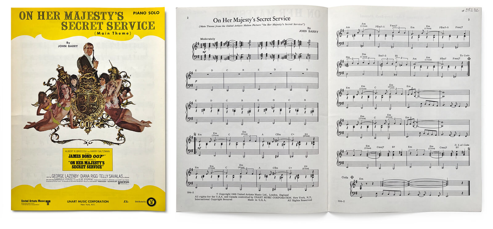 Main theme from On Her Majesty's Secret Service sheet music (Unart Music Corporation, US, 1969)