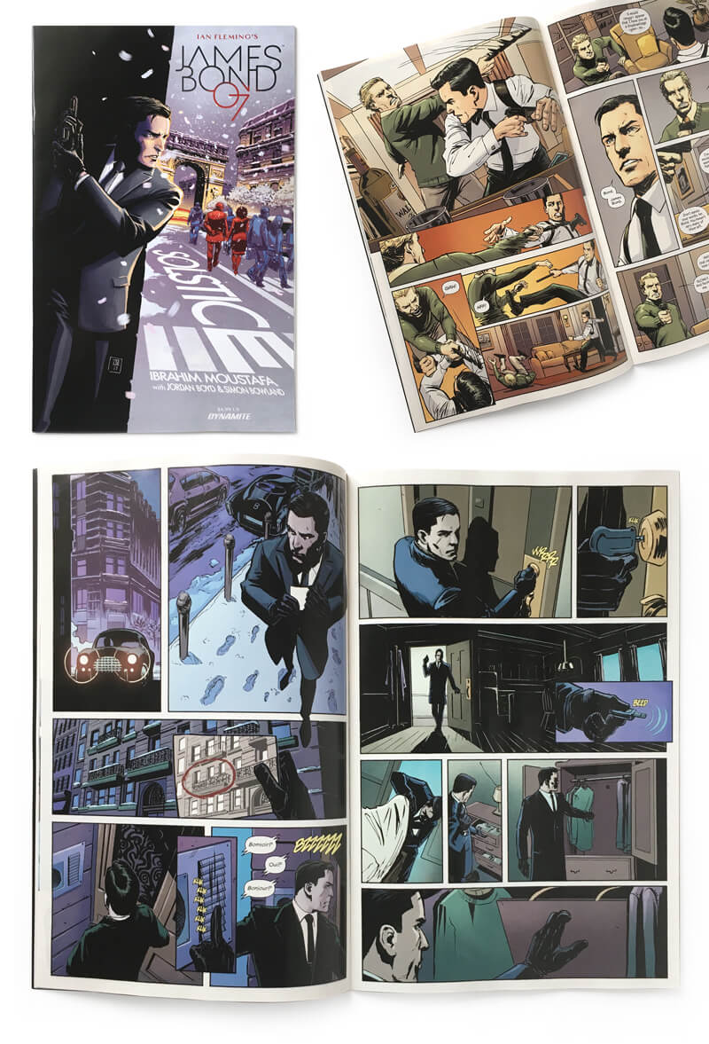 James Bond Solstice one-off comic by Ibrahim Moustafa with Jordan Boyd and Simon Bowland (Dynamite Entertainment, US, 2017). To find out more about Ibrahim Moustafa, especially his sublime 007 artwork, check out his excellent website
