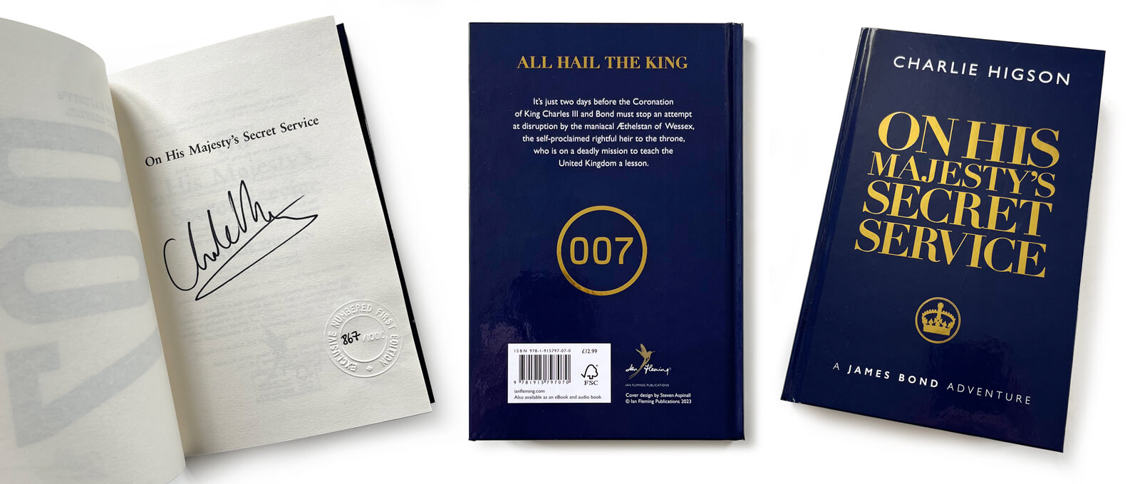 Special signed and numbered edition of 1000 copies of On His Majesty's Secret Service by Charlie Higson (Ian Fleming Publications Ltd./Goldsboro Books, UK, 2023)