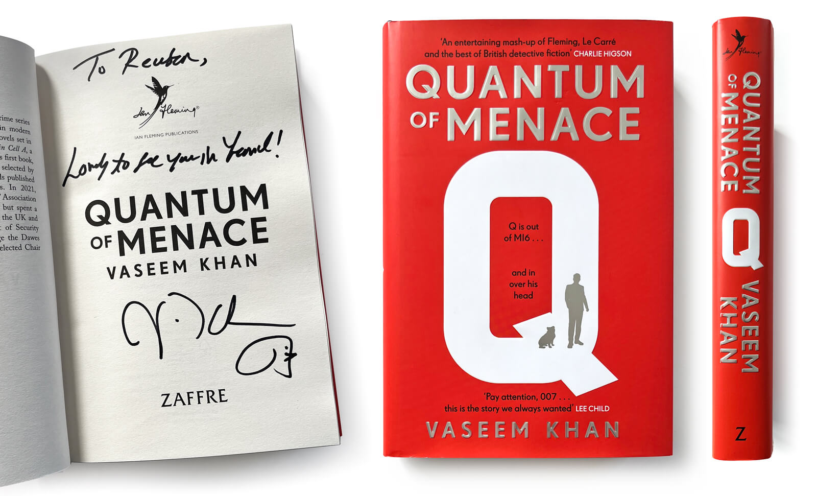 Quantum Of Menace by Vassem Khan. Kindly signed in person by the author at the Yeovil Literary Festival 2025. (Zaffre, UK, 2025)