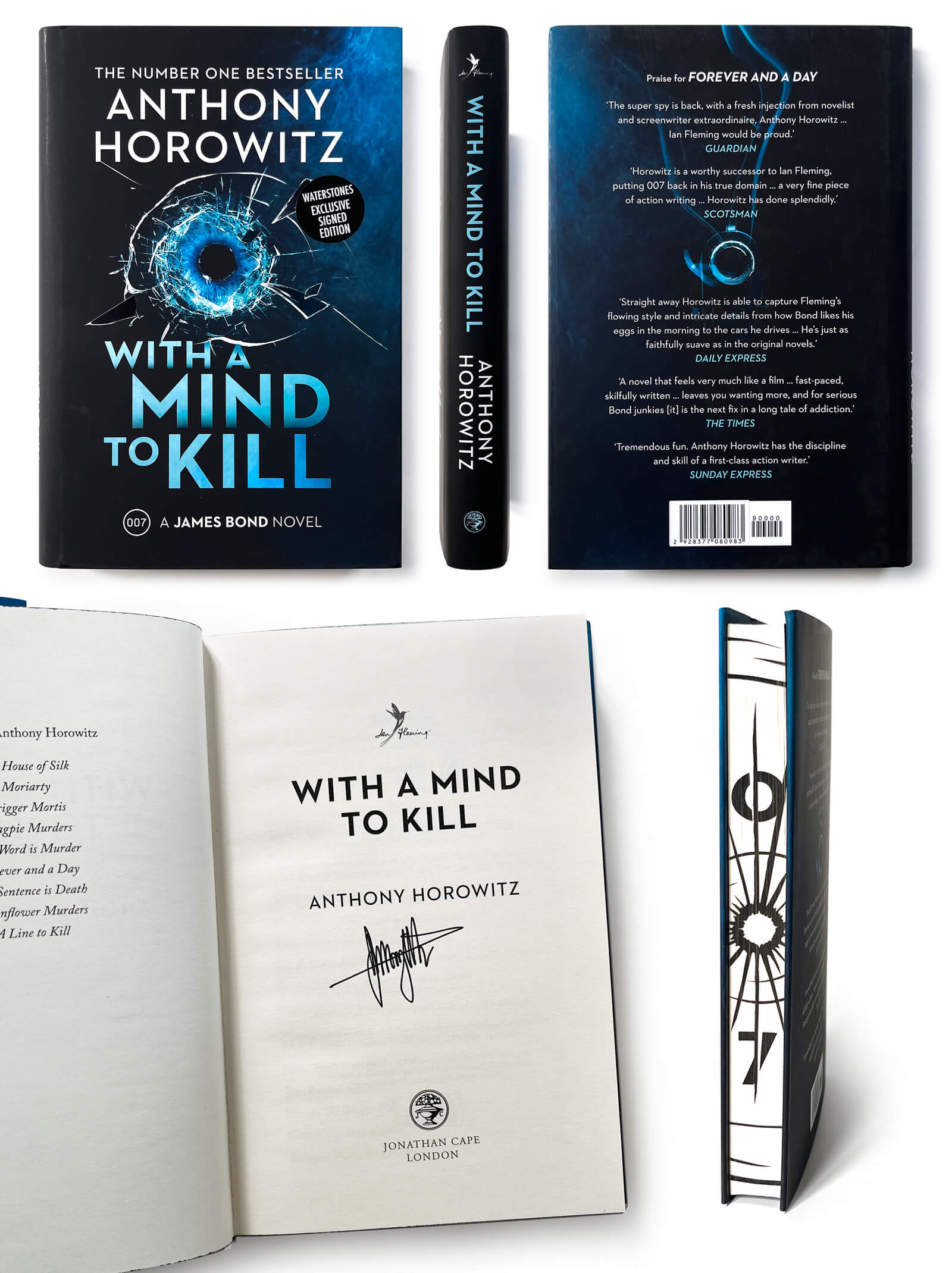 With A Mind To Kill by Anthony Horowitz (Jonathan Cape, UK, 2022). This is a limited author signed version that was only sold in Waterstones stores and has special 007 artwork down the page edges.