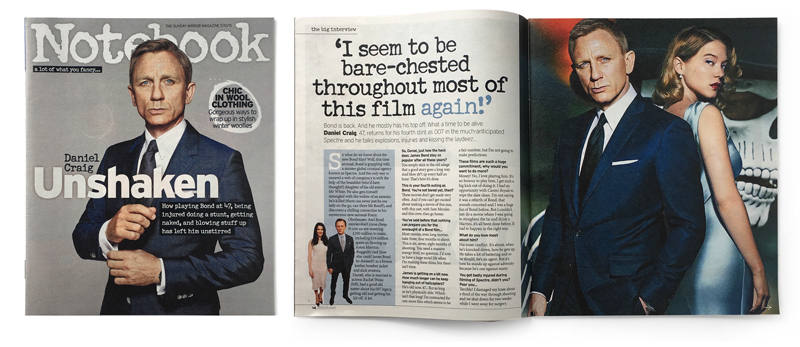 The Sunday Mirror Notebook newspaper magazine with Spectre cover and article (The Sunday Mirror, UK, 11th October 2015)
