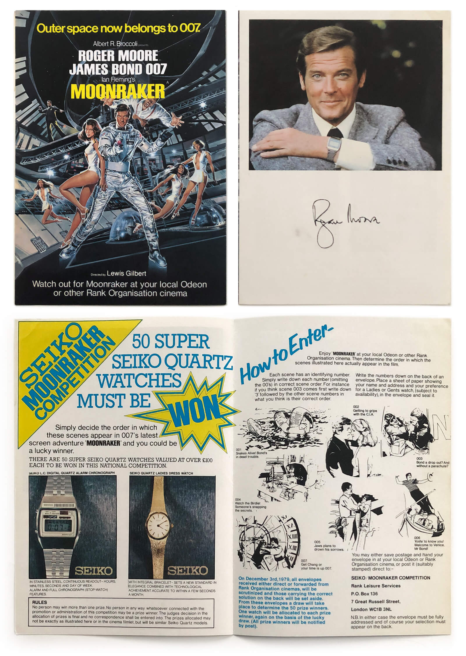 A5 Seiko Moonraker competition folding flyer (Seiko/Odeon, UK, 1979)