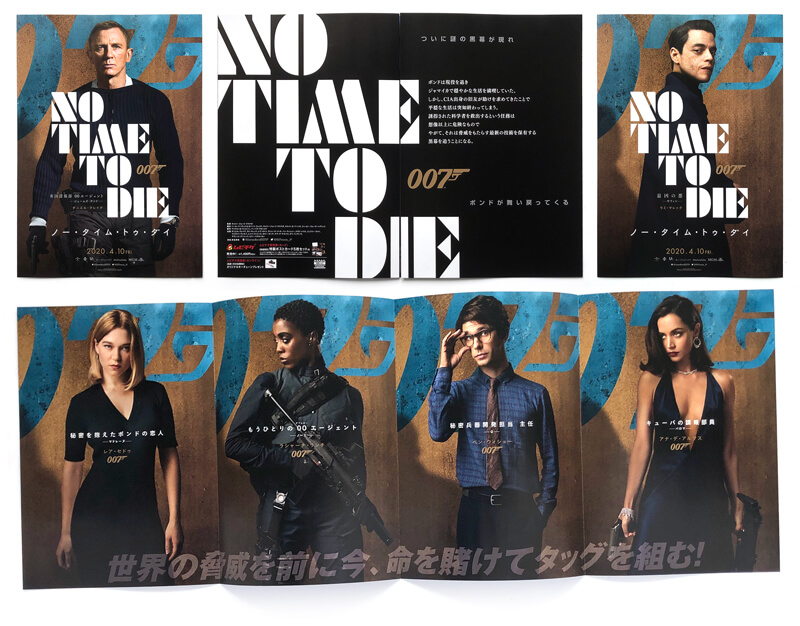 Eight page No Time To Die promotional folding cinema flyer (Universal/TOWA/MGM, Japan, 2020)