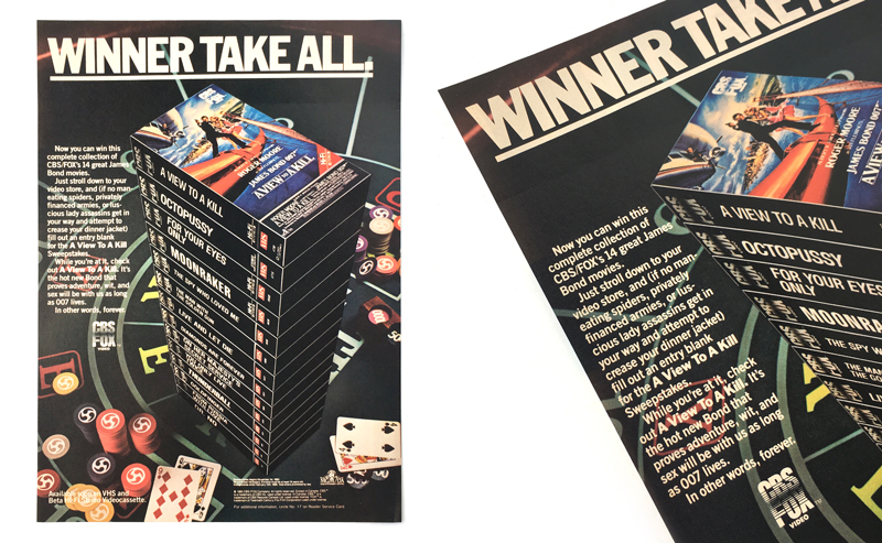 CBS Fox Video advert for their A View To A Kill sweepstakes to win a set of James Bond videos (CBS Fox Video, US, c.1986)