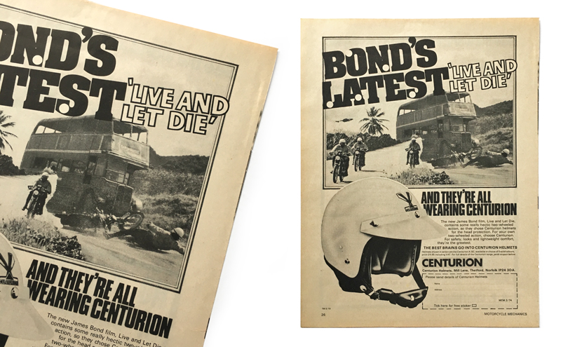 Live and Let Die Centurion motorcycle helmets advert (Taken from Motorcycle Mechanics magazine, UK, 1973)