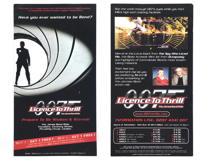 Licence To Thrill - The James Bond Ride at the London Trocodero promotional flyer (Mark Watty & Company, UK, 1999)