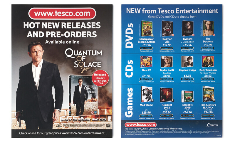 Quantum Of Solace Tesco DVD pre-order flyer (Tesco, UK, 2009)