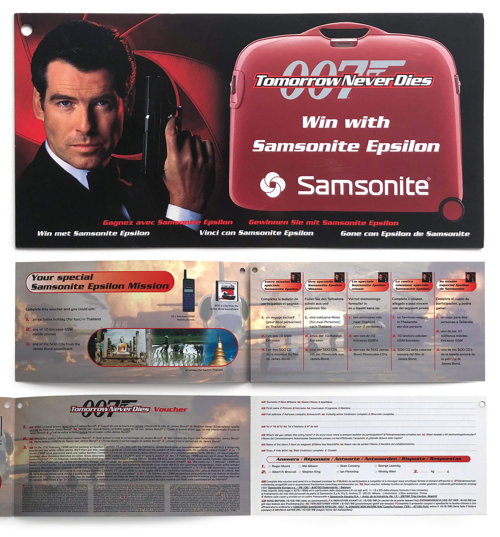 Samsonite Tomorrow Never Dies promotional flyer (Samsonite, Europe, 1997)
