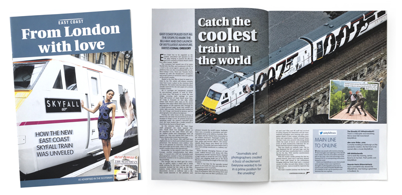 East Coast Trains magazine with Skyfall special to advertise the release of the film on DVD (East Coast Trains, UK, February 2013)