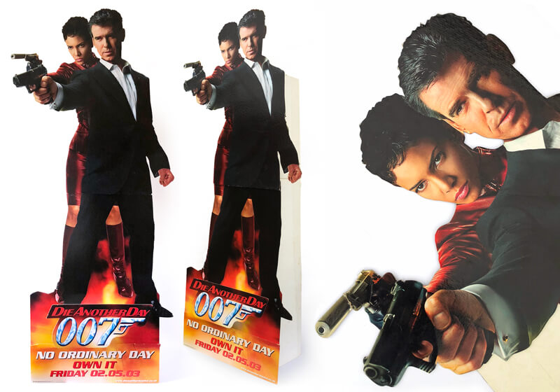 Near lifesize cardboard shop display stand to promote the release of Die Another Day on DVD and VHS (MGM Home Entertainment, UK, 2003)
