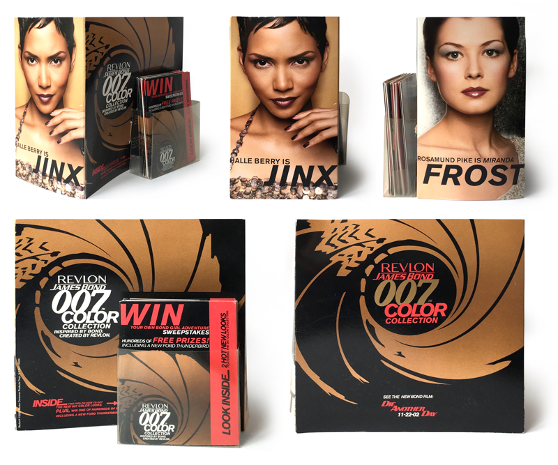 Revlon James Bond 007 Colour Collection rectangular counter display standee with competition leaflet holder (Revlon, US, 2002)