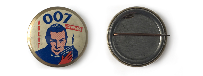 007 metal button badge that you could claim by sending in 5 of the James Bond Secret Agent 007 chewing gum wrappers (Swell/Philadelphia Chewing Gum Corp., US, 1965)