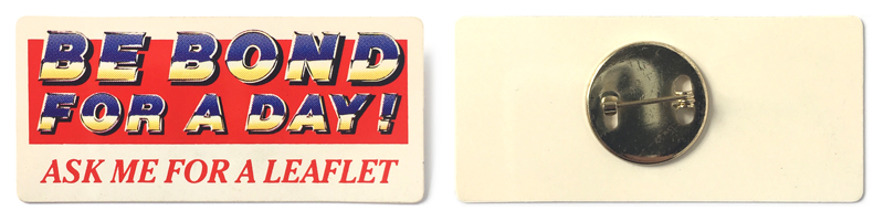Easy, and often reasonably affordable to collect, Bond badges and stickers are great items to collect. There are some rarities though - most notably the Lone Star pin badges from the 1960s and a set of Octopussy stickers given away in promotional boxes of Shredded Wheat cereal in the UK in 1983.