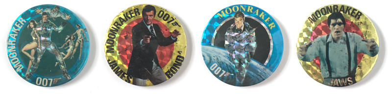 Set of four Moonraker reflective metal badges (Paw Factors, UK, 1979)