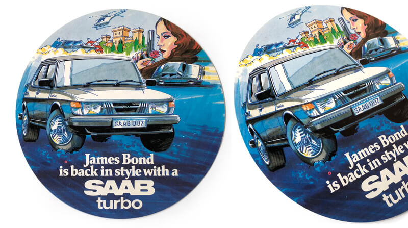 Saab 900 James Bond promotional sticker. This was produced after the release of John Gardner's Licence Renewed in which the car featured (Saab, UK, c.1981-82)