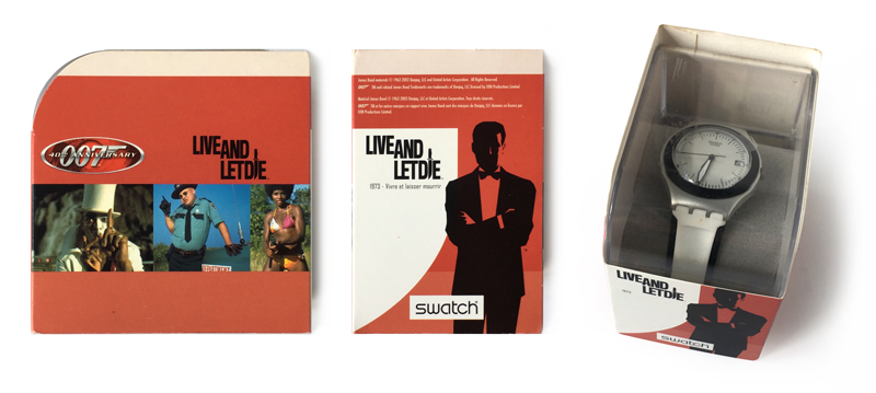 Live And Let Die watch from Swatch's collection released to celebrate the 40th anniversary of the Bond films (Swatch, UK, 2002)